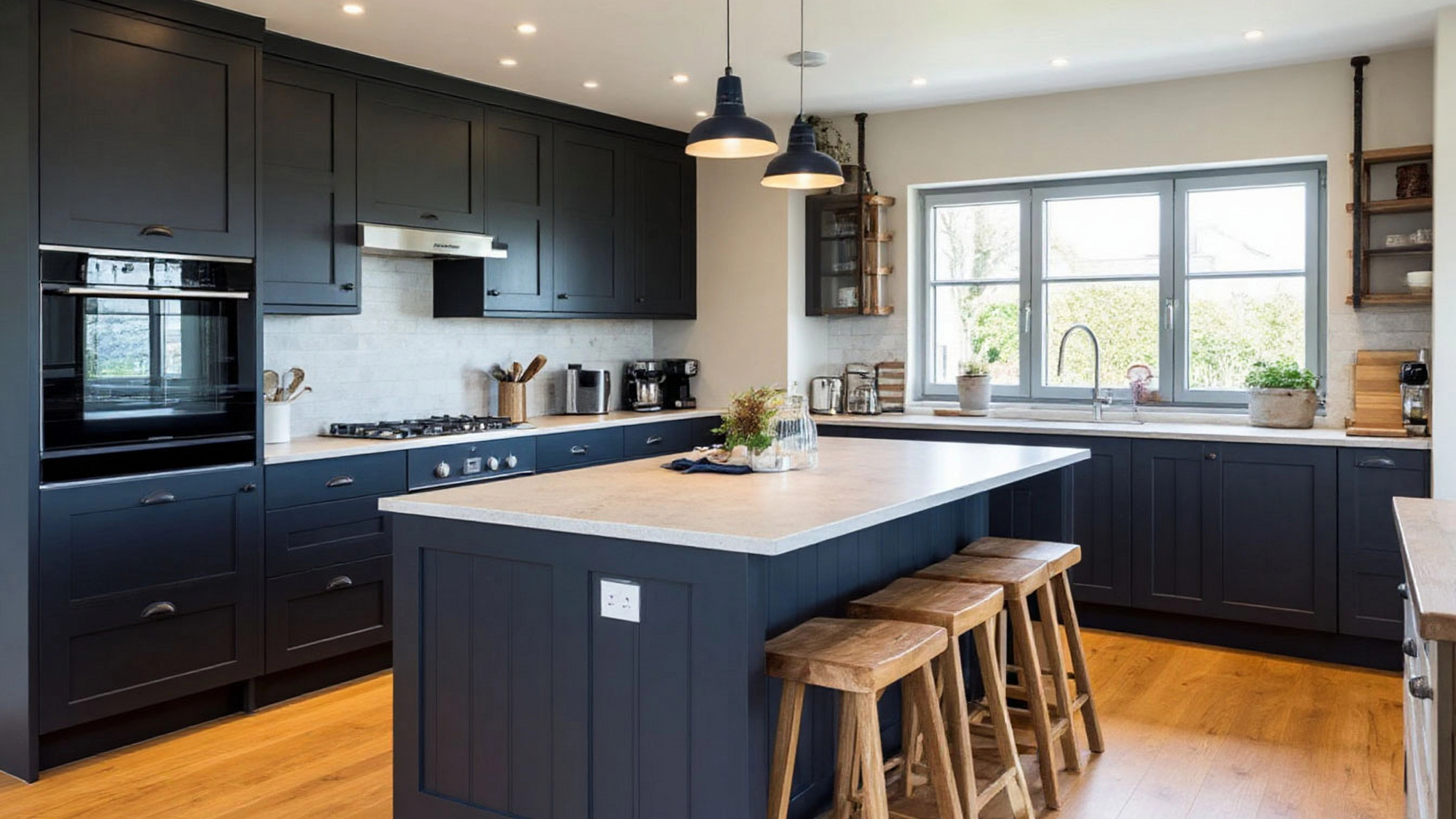 Графитовый цвет играет ключевую роль в восприятии этой кухни. Он подчеркивает глубину пространства, делает интерьер благородным и одновременно уютным. В отличие от ярких морских оттенков — бирюзы или аквамарина — графит несет в себе спокойствие и стабильность, он словно напоминает о ночном море, о силе волн и бескрайнем горизонте. Такой цвет помогает создать атмосферу уюта и защищенности, что особенно важно в домашнем интерьере.