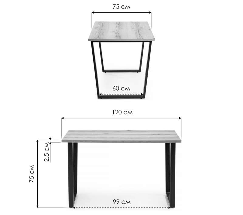 Стол деревянный Лота Лофт 120х74х75 25 мм дуб вотан / матовый черный (75x75).