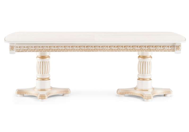 Стол деревянный Морнит 220(320)х110 слоновая кость / золото (110x76).