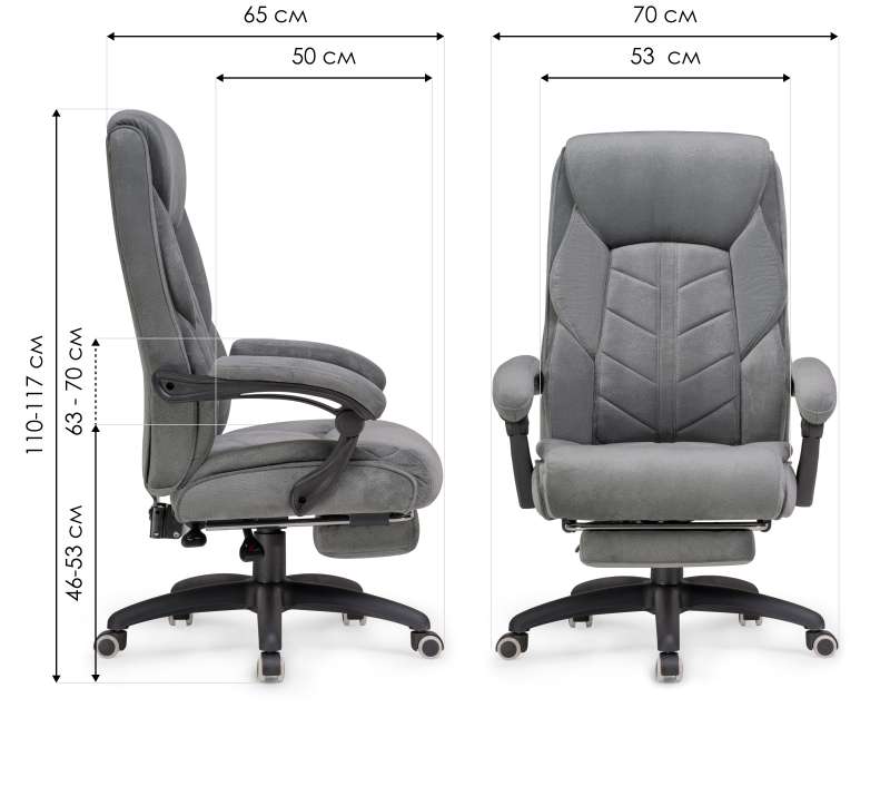 Высота подлокотников: 63 - 70 см. Высота спинки: 70 см. Диаметр крестовины: 60 см.